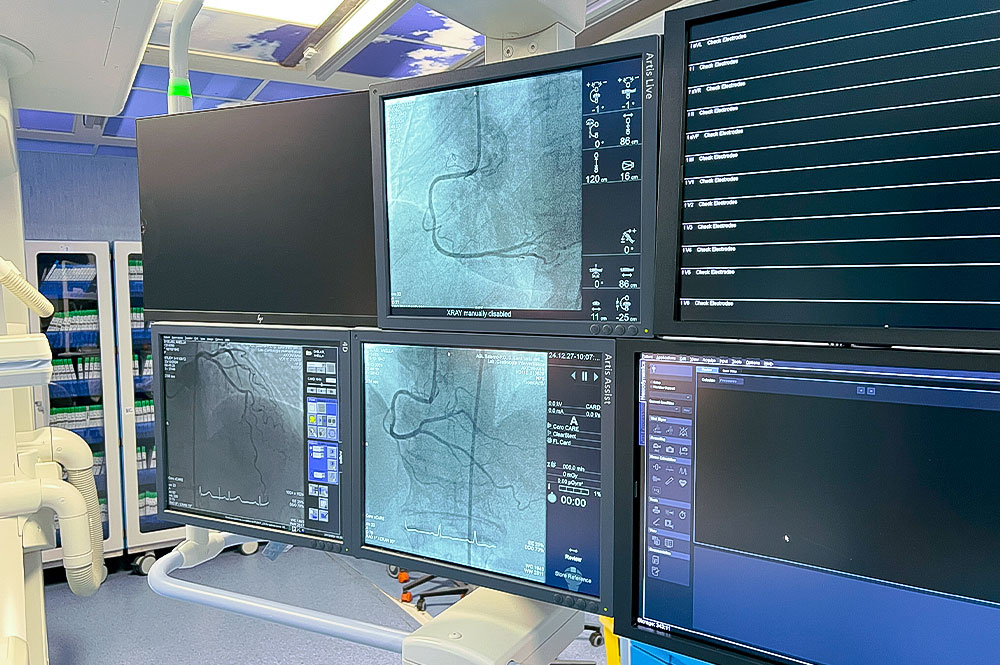 La principale indagine medica che viene eseguita nel nostro Laboratorio di Emodinamica è la Coronarografia, a cui può seguire l’angioplastica con posizionamento di uno o più stent, a carico del vaso/dei vasi responsabili dell’insorgenza dell’infarto/ischemia miocardica.